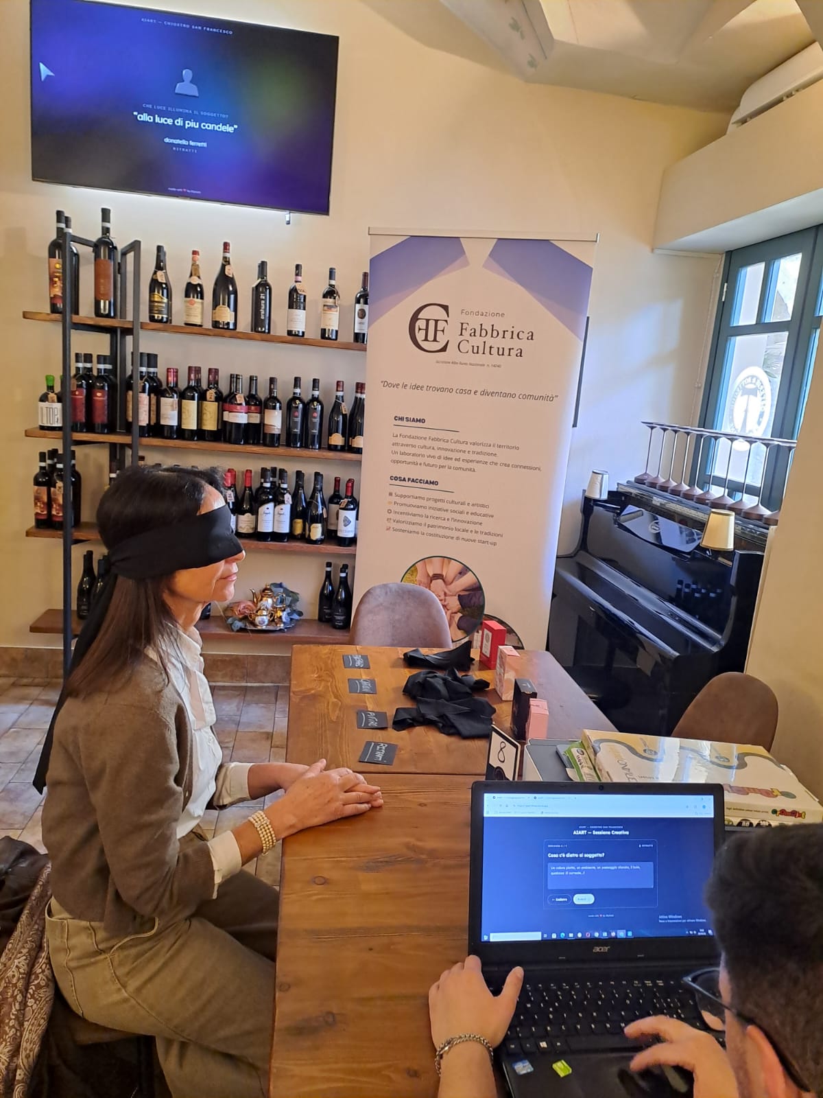 L’esperienza proposta è tanto semplice quanto dirompente: il partecipante viene invitato a sedersi e a farsi bendare. In un mondo saturato da stimoli visivi costanti, il progetto AIART impone il silenzio degli occhi per accendere la vista dell’anima. Privato del senso della vista, l’utente attinge esclusivamente alla propria immaginazione, guidato dalla voce e dalla competenza di Luca Di Bella, sviluppatore del software AIART e mente della Start Up Innovativa Elysium srl.